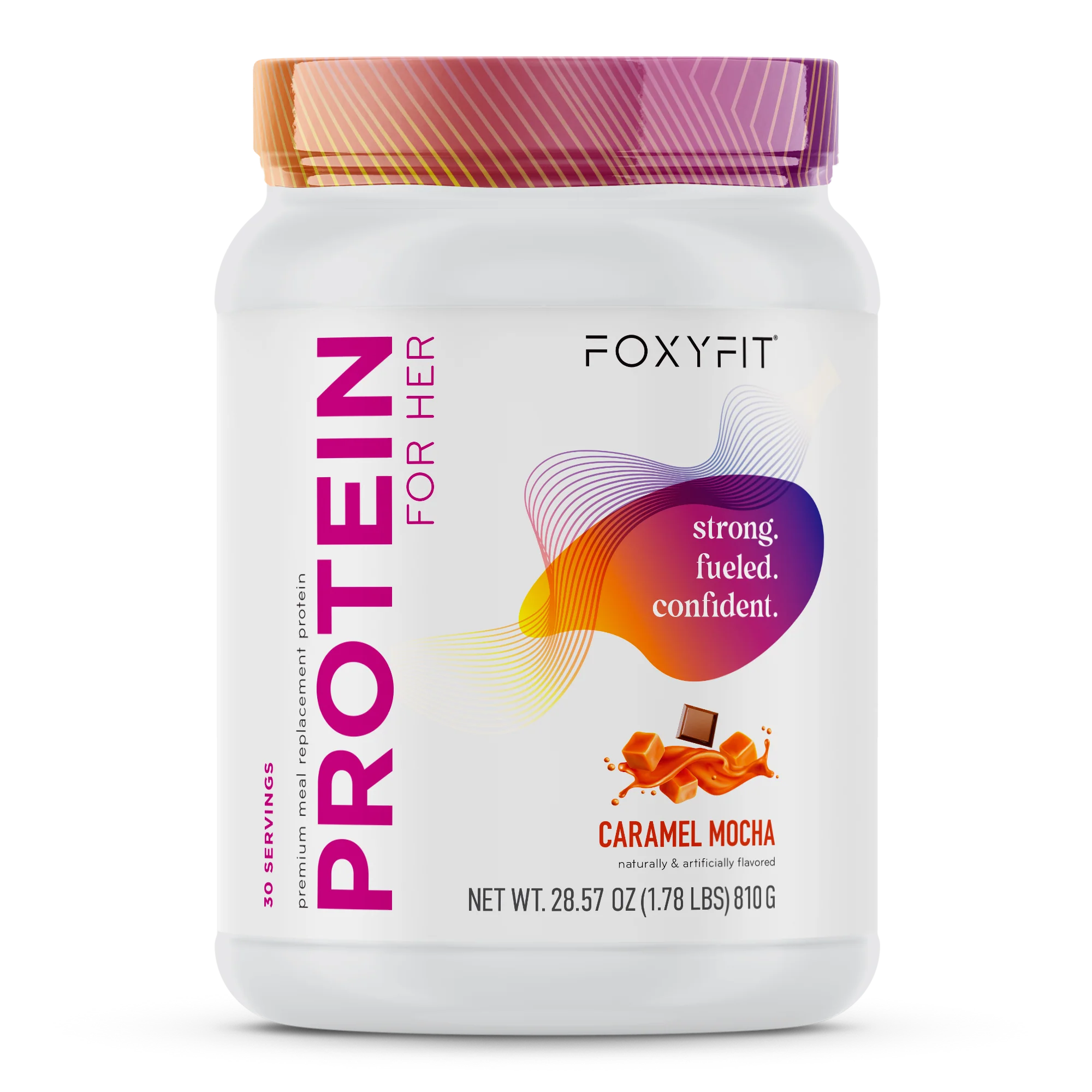 Protein for Her de Foxy Fit es la sinergia perfecta de lo que toda mujer quiere de un reemplazo de proteínas para comidas. Di adiós a las proteínas calcáreas, grumosas y de mal sabor que quizás hayas probado antes. Ya no tienes que comprometer el gusto por la calidad. Esta proteína para mujeres de increíble sabor, textura y ligereza tiene 20 g de proteína de alta calidad por porción. No olvidamos agregar CLA para quemar la grasa corporal rebelde. También agregamos biotina para aumentar su brillo natural.
