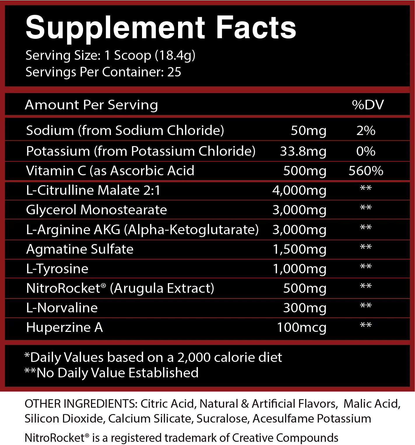 Norvalina: un ingrediente de la vieja escuela que se utiliza para maximizar el flujo sanguíneo. La cantidad de norvalina en este producto es mucho mayor de la que encontrarías en un producto normal, lo que significa que la sangre bombeará durante todo el tiempo que entrenes.