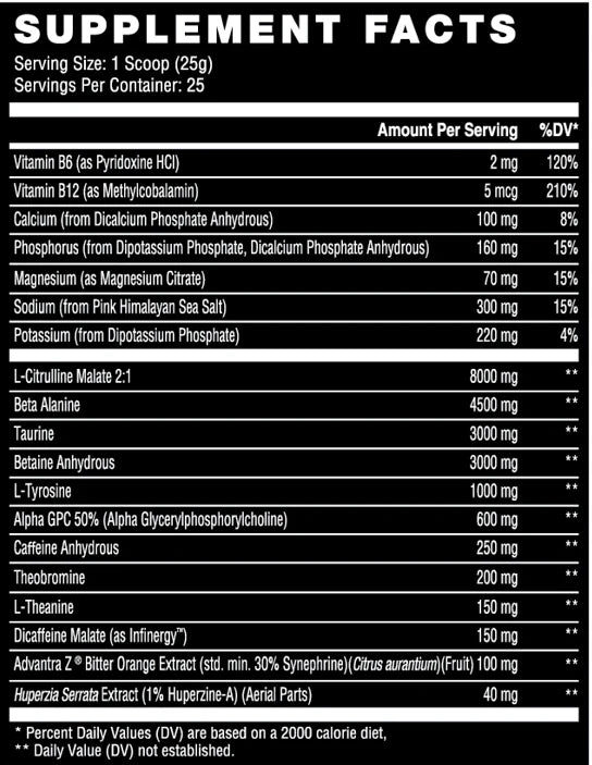 Diesel Series Hardcore Reckoning XL - The strongest pre-workout in the HC Platinum lineup, featuring 23 grams of ingredients per scoop. Not only does each contain 8g Citrulline Malate, 4g Beta Alanine, 3g Taurine, and 3.5g BetaPower® it features a robust fully loaded nootropic profile that will get you dialed in for each lift. We specifically chose each ingredient for optimal performance without compromising flavor.