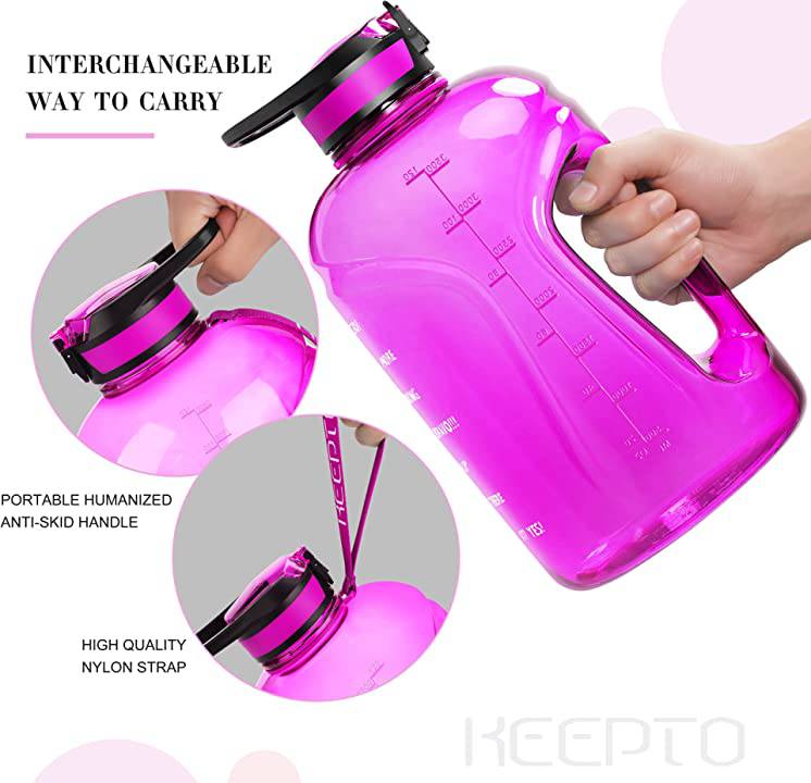 KEEPTO Motivational 1 Gallon Water Bottle with Straw,BPA Free Water Jug with Time Marker