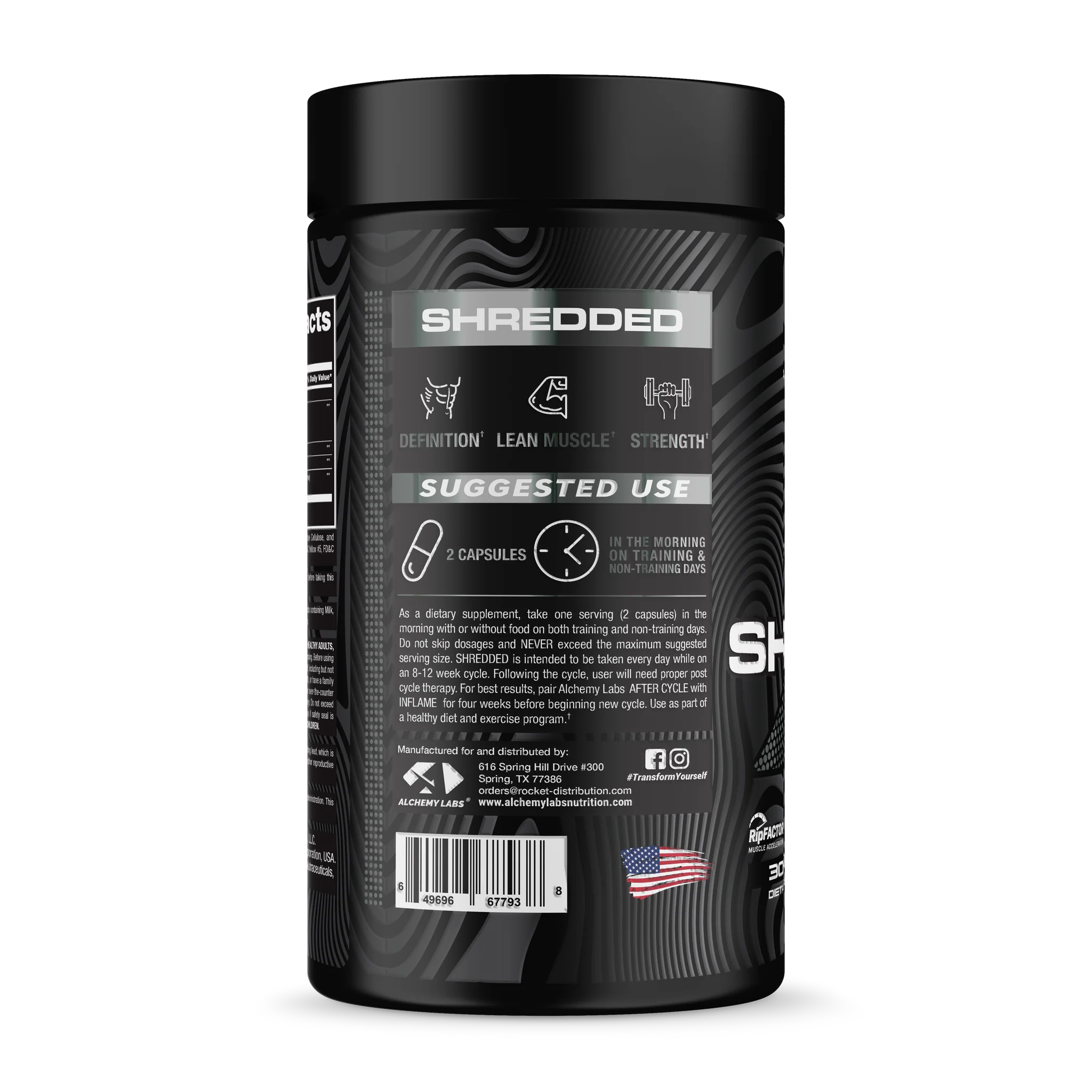 Alchemy Labs Shredded is specially formulated to target stubborn weight while also supporting muscle definition and strength. Its unique blend of ingredients, including RipFACTOR® and NooGandha®, work together to boost your metabolism, increase energy, and promote weight loss.