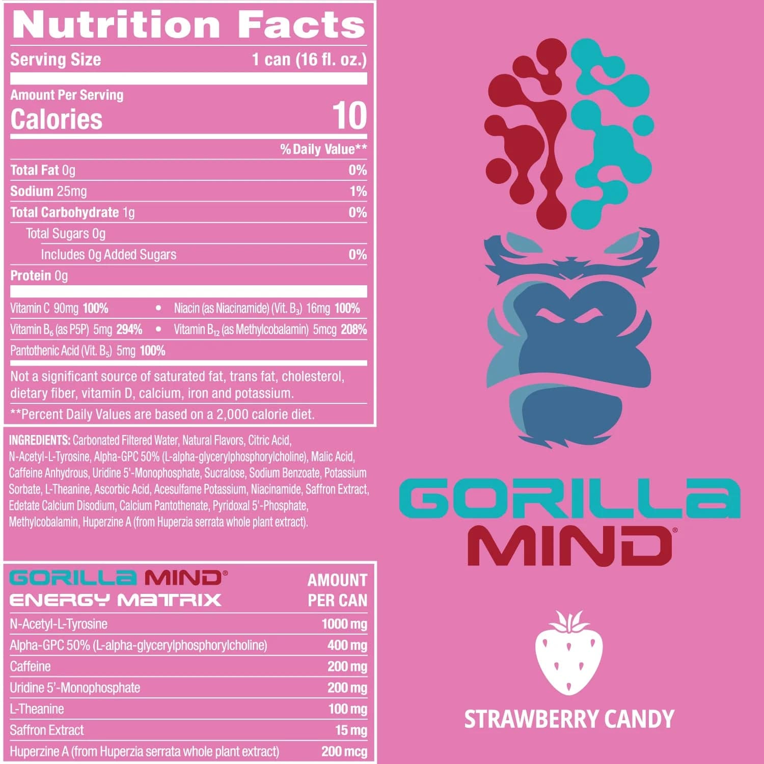 • Experience the power of Gorilla Mind Energy Drinks - the epitome of efficacy and flavor in the world of energy beverages. Crafted with a completely unique and potent active ingredient profile, Gorilla Mind Energy stands in a league of its own, setting new standards for energy drinks. Not only does it deliver an unparalleled taste, but it also unleashes an unmatched active ingredient matrix that produces distinct amplified focus, elevated mental clarity, and a surge of energy that clearly surpasses other options in the market.