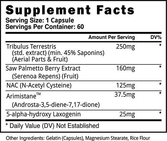 Stimulation of natural testosterone production with Tribulus Terrestris Prevent conversion of DHT with Saw Palmetto extract to protect prostate health and reduce the risk of hair loss Increase production of the natural antioxidant Glutathione in the body with NAC (N-Acetyl Cysteine), which functions helps prevent liver failure Decrease catabolic effects (muscle degeneration) using Laxogenin, which will help preserve gains following the conclusion of your cycle Reduce excess estrogen levels with Arimistane to prevent water and fat retention, mood swings, low sex drive, and lack of energy