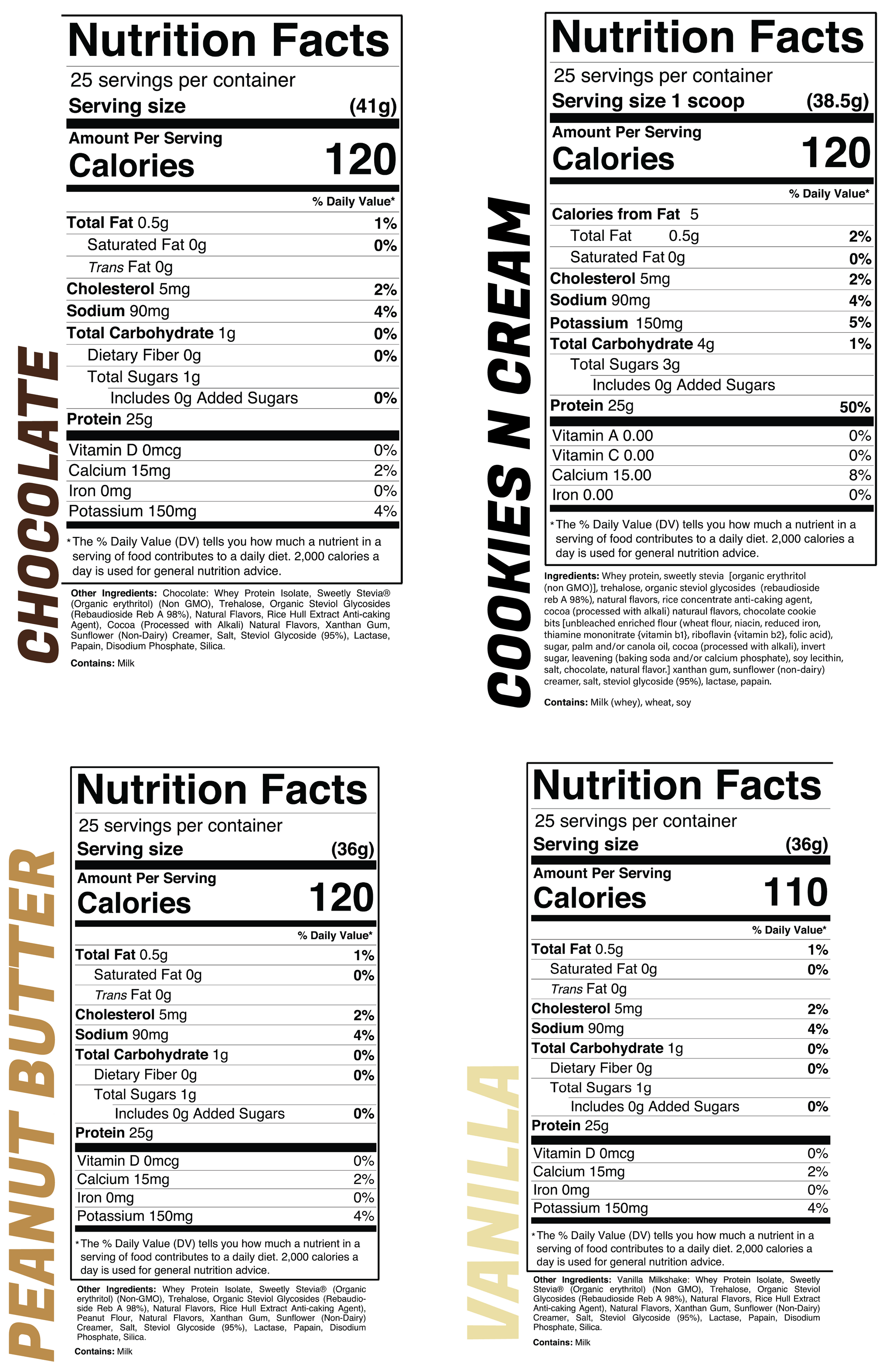 Raw brings you grass-fed micro-filtered isolate protein. Each scoop packs 25 grams of the highest quality protein with 0.5g of total fat and 1 gram of carbohydrates. RAW Protein does increase the gram per serving in order to get the perfect taste but it does not lower the quality of the whey protein itself.
