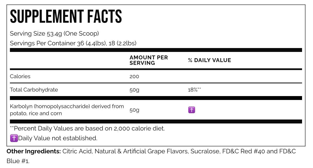 KarBolyn Fuel 2.2lb consists of fast-absorbing carbohydrates that provide a reliable energy source during physical activity. Loaded with glycogen, it allows athletes to experience improved performance, extended muscle pumps and elevated strength and power output.