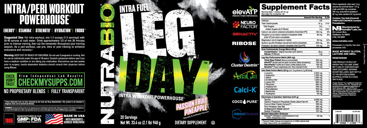 NutraBio LEG DAY is a special edition of our top-selling intra-workout supplement, Intra Blast. LEG DAY takes Intra Blast to new heights and beefs it up to further improve your workout performance for those killer workouts where you leave everything in the gym. Those workouts where you question if you even want to attempt walking out to your car. In those workouts, you don’t want to hit the wall, you don’t want to throw in the towel, you want to annihilate your muscles and force new growth. NutraBio LEG DAY can help you do just that.